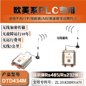 達泰4系歐美系PLC專用無線通訊終端-DTD434M是針對歐美系PLC的通訊特點而開發的專用工業級無線通訊產品,達泰4系無線數據通訊模塊內嵌RS232/RS485雙接口,完全兼容并自適應西門子PPI協議、莫迪康標準MODBUS協議等。DTD434M能與歐美系PLC組成無線測控網絡,無線可靠傳輸距離達到3公里以上,DTD434M可以穿墻繞射,集成EMI抗干擾濾波單元,經過了十年以上工業現場運行考驗,可確保工作于各種惡劣環境工業場合長期運行。